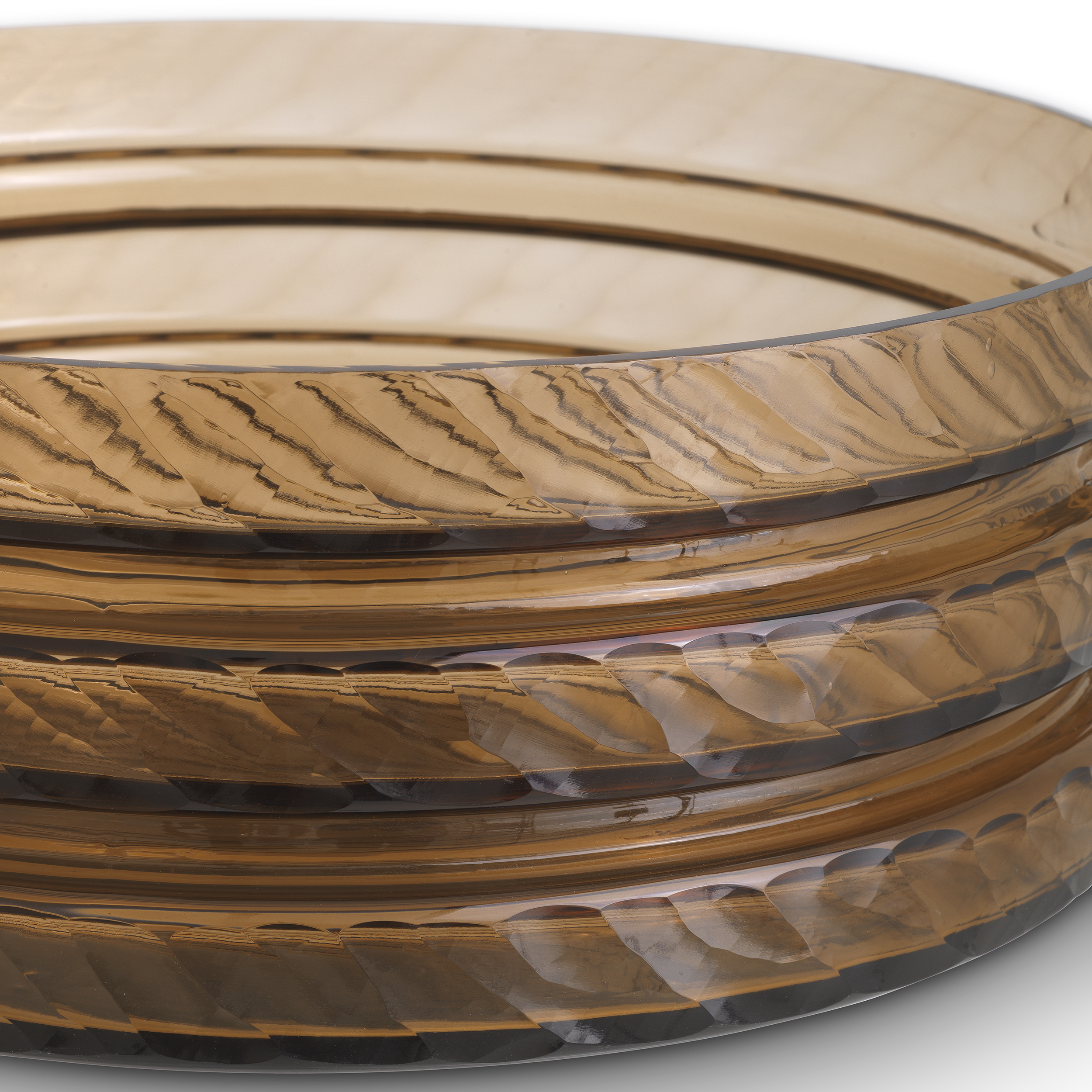 Купа „Loxley“ е изискан арт аксесоар, който внeся визуална елегантност и артистична изтънченост във вашия интериор. Изработена ръчно от висококачествено стъкло с деликатно ръчно изрязана текстура, тази купа притежава изящна форма и топъл, меден оттенък, които създават усещане за спокойствие и стил — детайл, който обогатява както модерни, така и по‑класически пространства с ненатрапчива изтънченост.