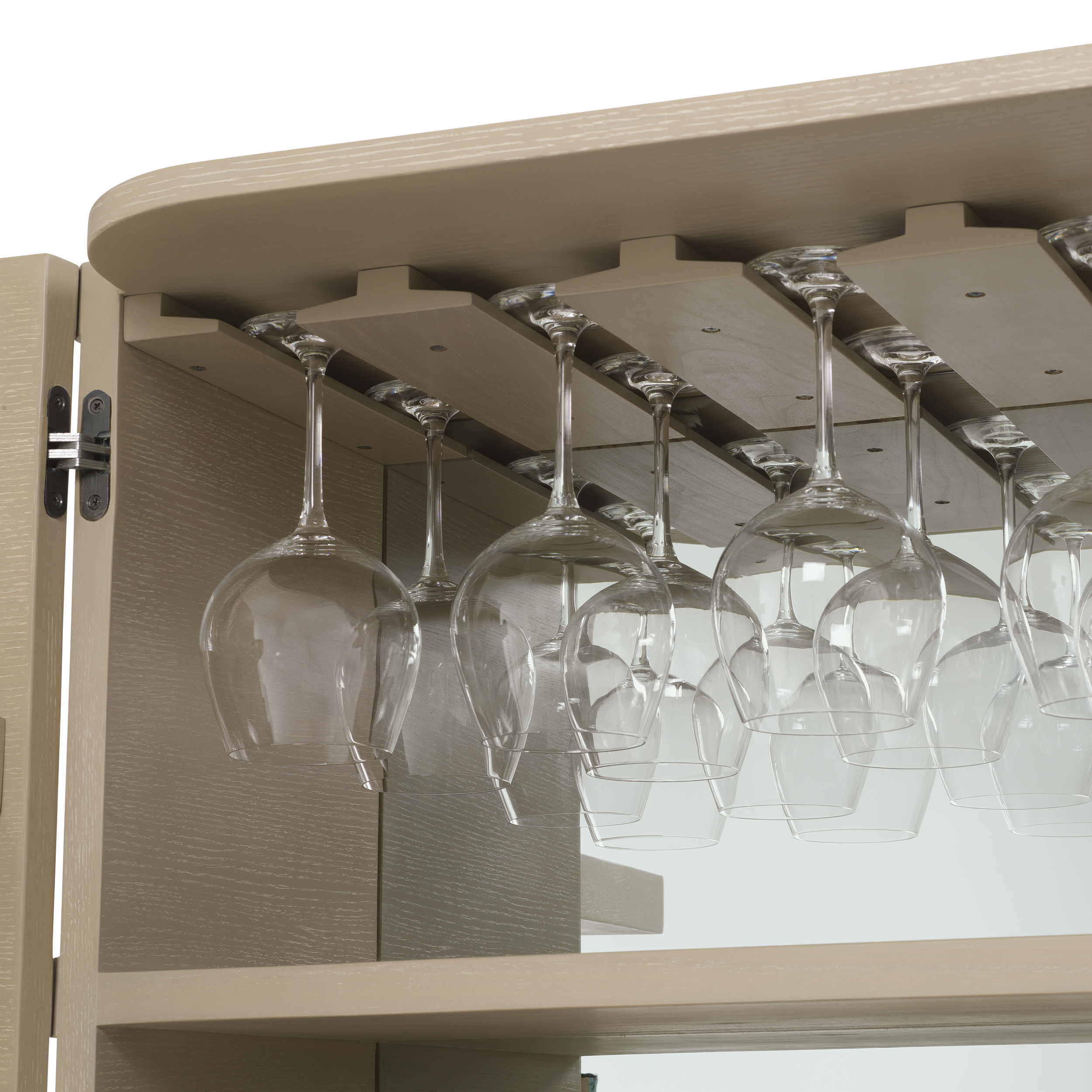 Бар шкафът предлага удобно и добре организирано пространство за съхранение, което го прави идеален както за ежедневна употреба, така и за специални поводи.