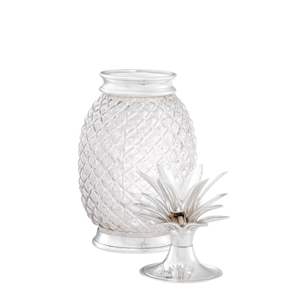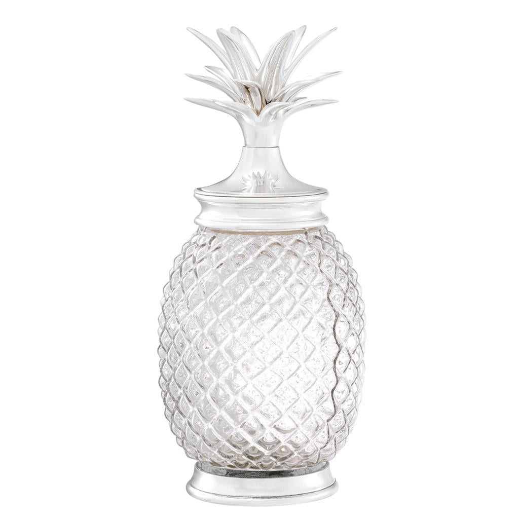 Този елегантен съд за ананас е изработен от стъкло и има корона и основа с ретро месингово покритие. Едновременно драматичен акцент и удобна тенджера за съхранение.