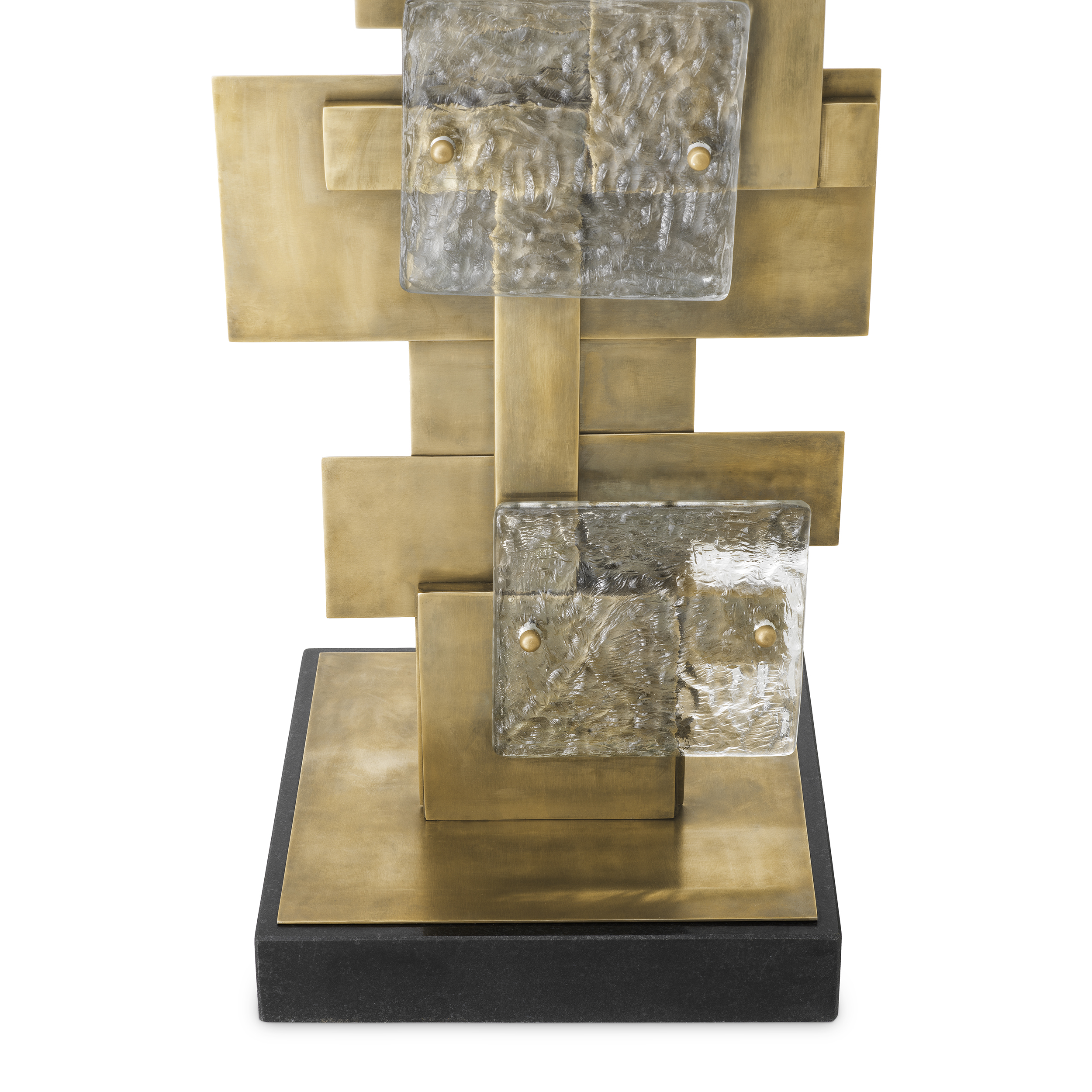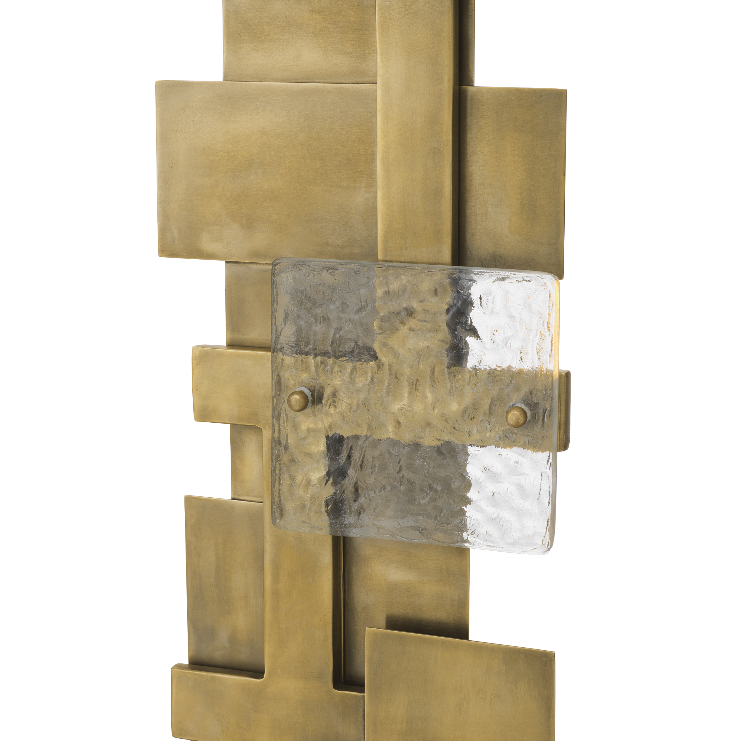 Конструкцията е изпълнена с vintage brass финиш, който излъчва топлина и непреходна елегантност. В комбинация с стъклени елементи, лампионът създава усещане за лекота и изисканост, като красиво отразява светлината и придава допълнителна дълбочина на интериора.