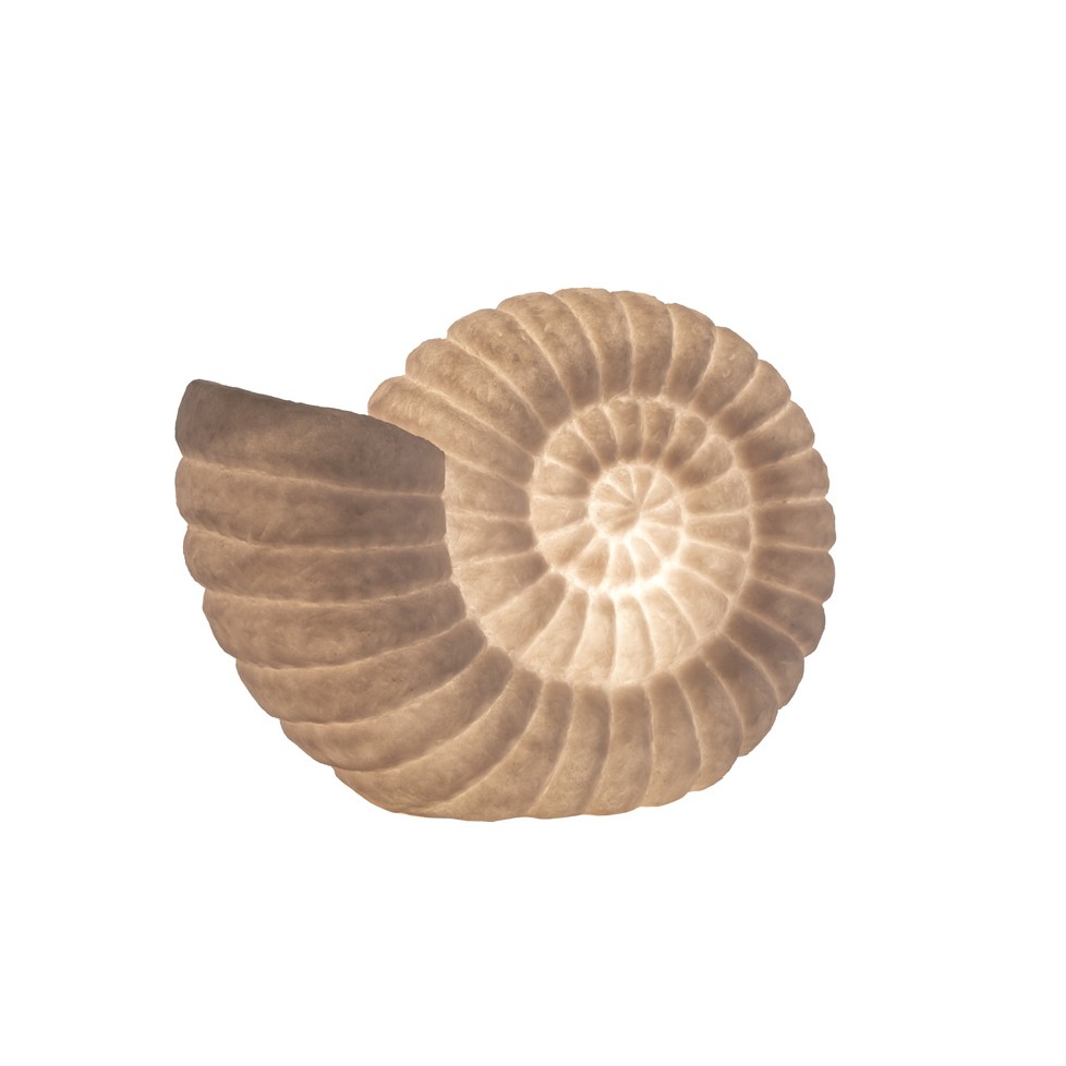 Дизайнът на лампа „Seashell“ се отличава със скулптурна метална рамка с кръгла форма, в която е позициониран декоративен елемент с органичен релеф. Тази комбинация създава усещане за баланс между геометрия и природни форми. Допълнена с изчистен абажур, лампата разпръсква мека и приятна светлина, която създава уютна атмосфера и подчертава детайлите на интериора.