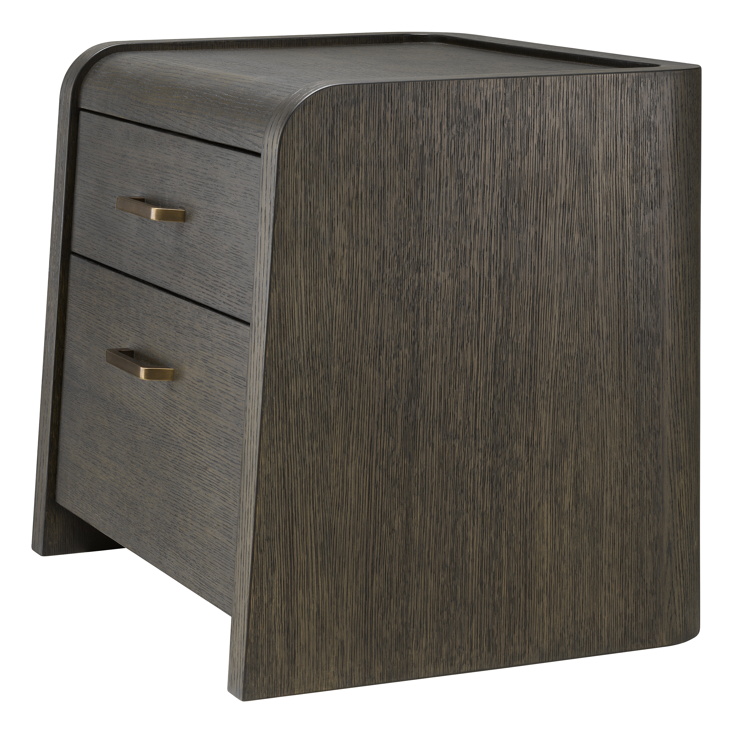Нощно шкафче „Joane“ е стилна интерпретация на модерната класика, съчетаваща топлината на естественото дърво с елегантни метални акценти. Изработено от mocha oak veneer с medium bronze финиш, този модел създава по-дълбока и наситена цветова визия, която придава уют и изисканост на интериора.